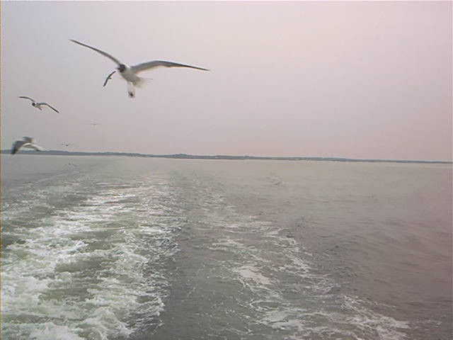 Shots looking back at Cedar Island from the ferry's observation deck.