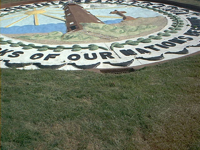 After we climbed the pile of trash hill, I was shown the Seal of the City of Virginia Beach, which apparently looks pretty nifty when it's lit up at night, as long as you're on the freeway down below. Not being on the freeway down below, but standing on a 30-degree slope right in front of it, it's hard to get a decent shot...